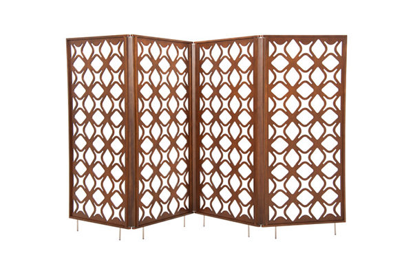 Este biombo de quatro folhas articuladas de madeira tem como inspiração os gradis de janelas encontrados nas casas de subúrbios de diversas cidades do Brasil. Esses gradis de metal foram muito difundidos durante os anos 1960 e 1970, e são uma derivação das grades e guarda-corpos de ferro fundido presentes na arquitetura dos períodos precedentes.