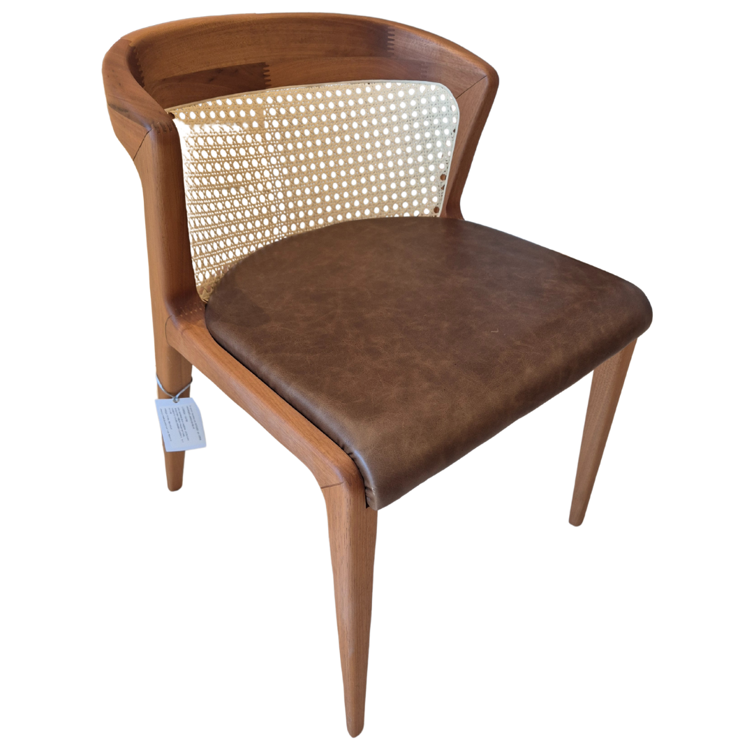 Cadeira Eva Estrutura em Jequitibá Freijó Palha Natural e Assento Em Couro