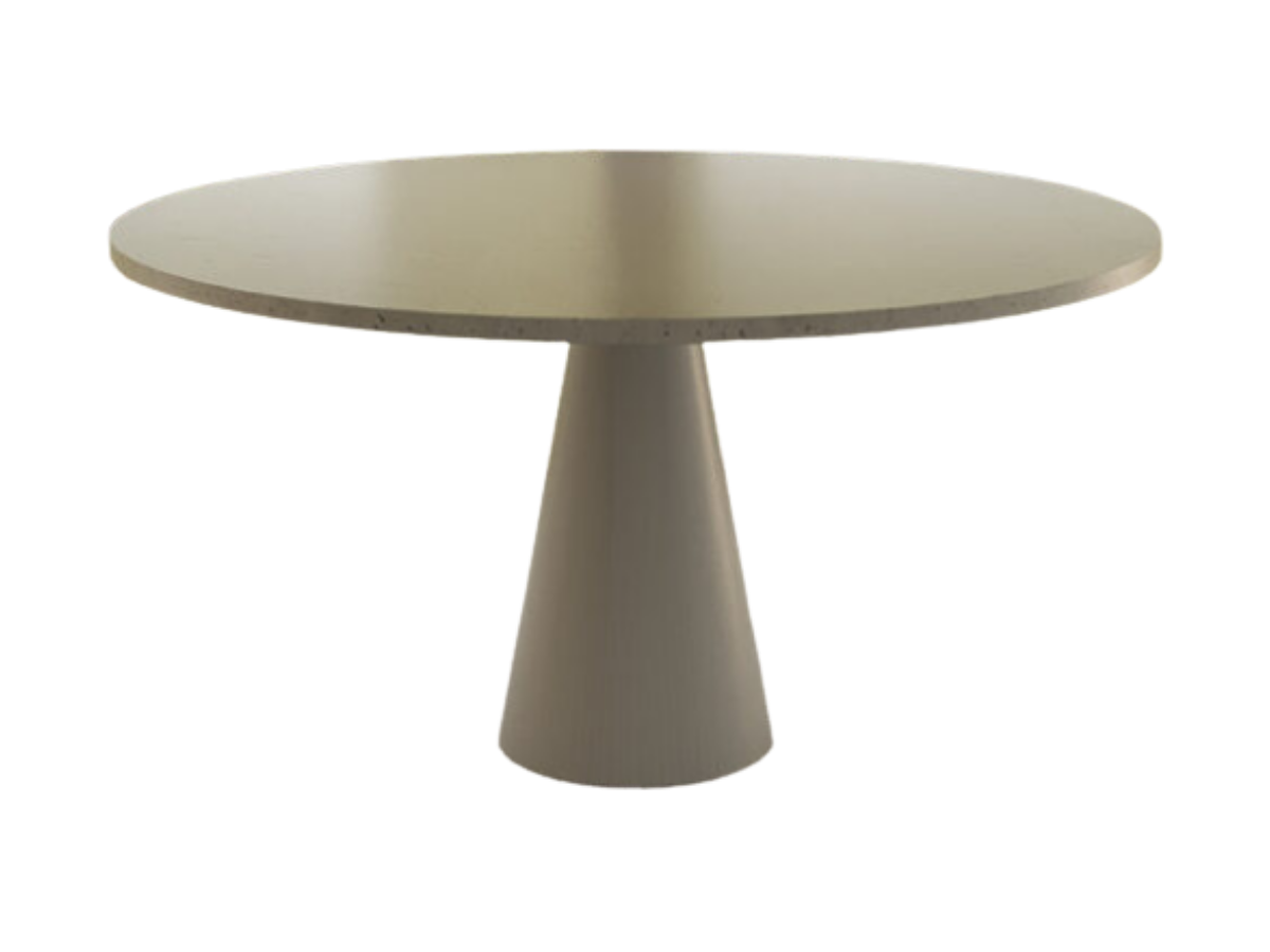 Mesa de concreto reforçado com fibras ou granilite; aço carbono.