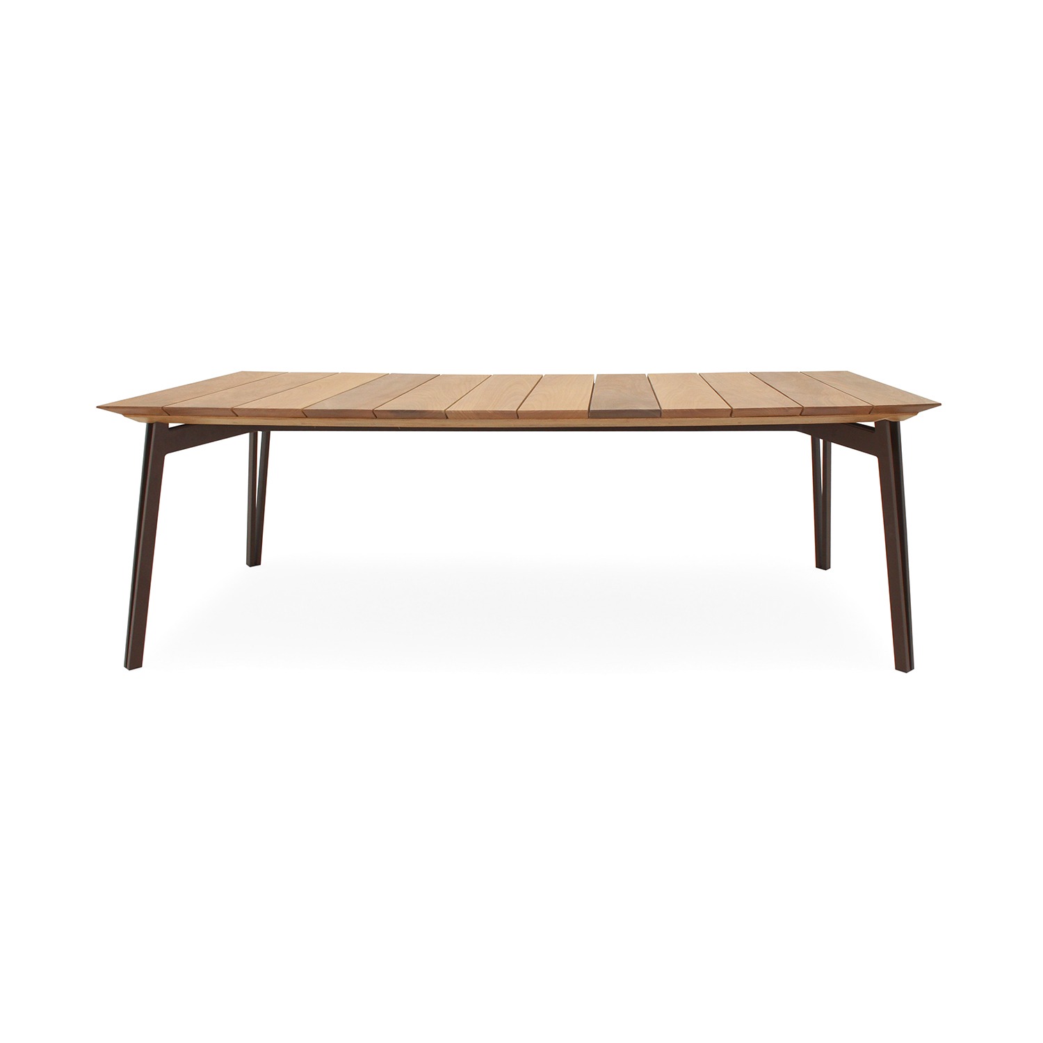 Estrutura em alumínio pintado. Tampo em madeira maciça cumaru.