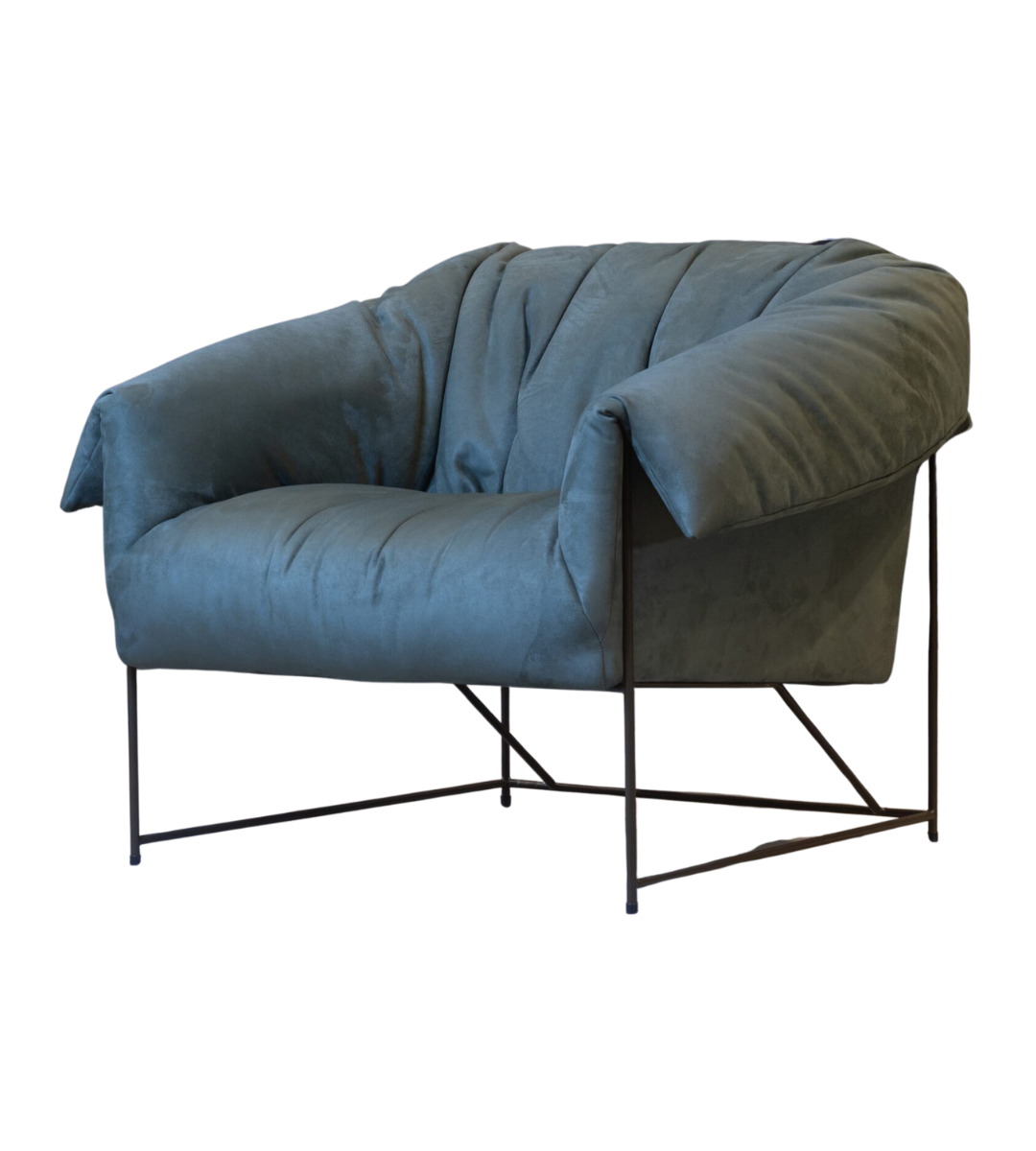 Estrutura em aço carbono, assento em madeira, tecido, espuma soft e fibra siliconada.