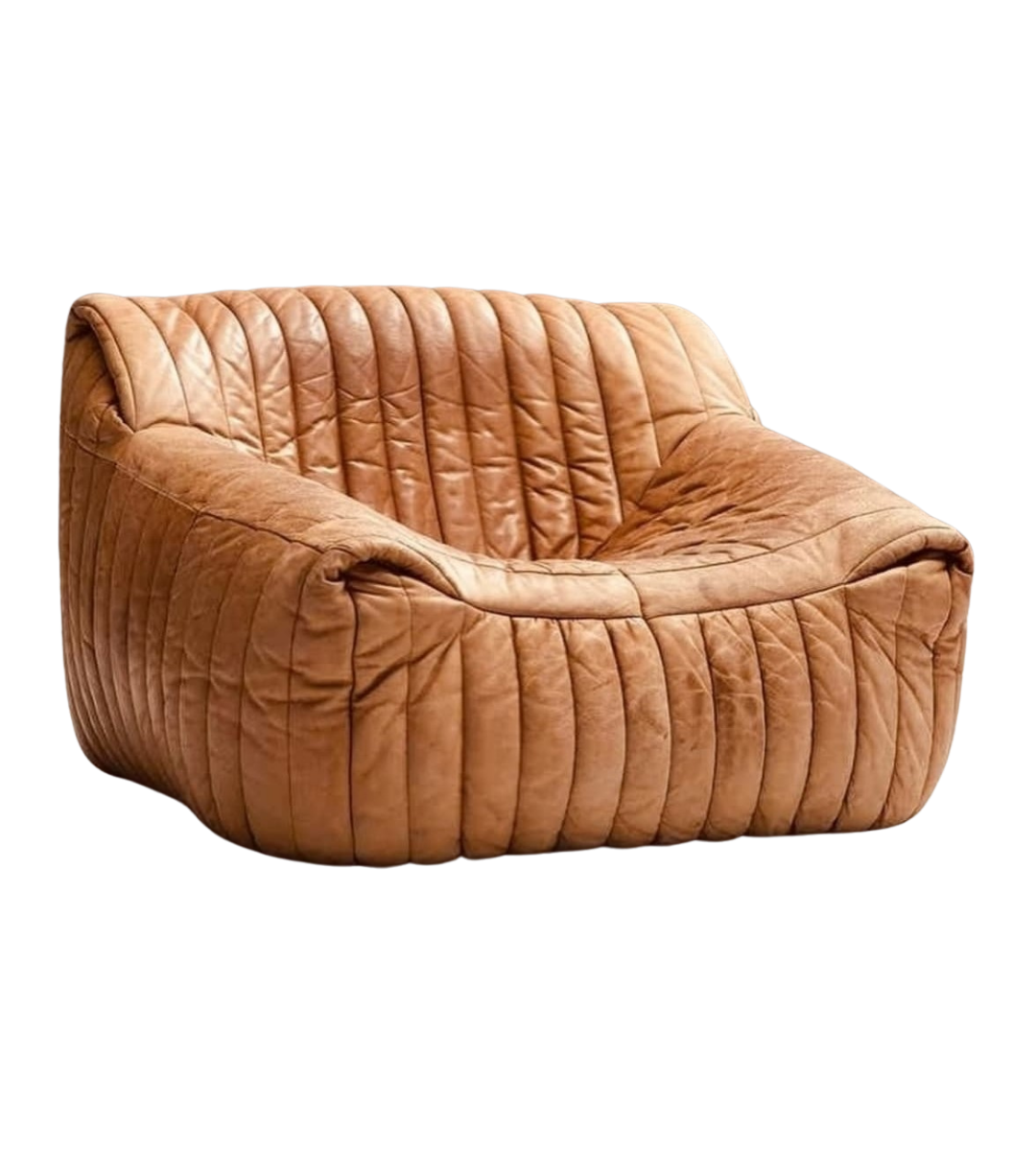 A Poltrona Nilo é uma obra-prima do design dos anos 70. Seu revestimento em couro legítimo, combinado com costuras caneladas grossas, acentua as curvas suaves que conferem uma estética orgânica e escultural. Ideal para ambientes modernos e sofisticados, esta peça atemporal é perfeita para quem busca conforto, exclusividade e um toque de estilo vintage.