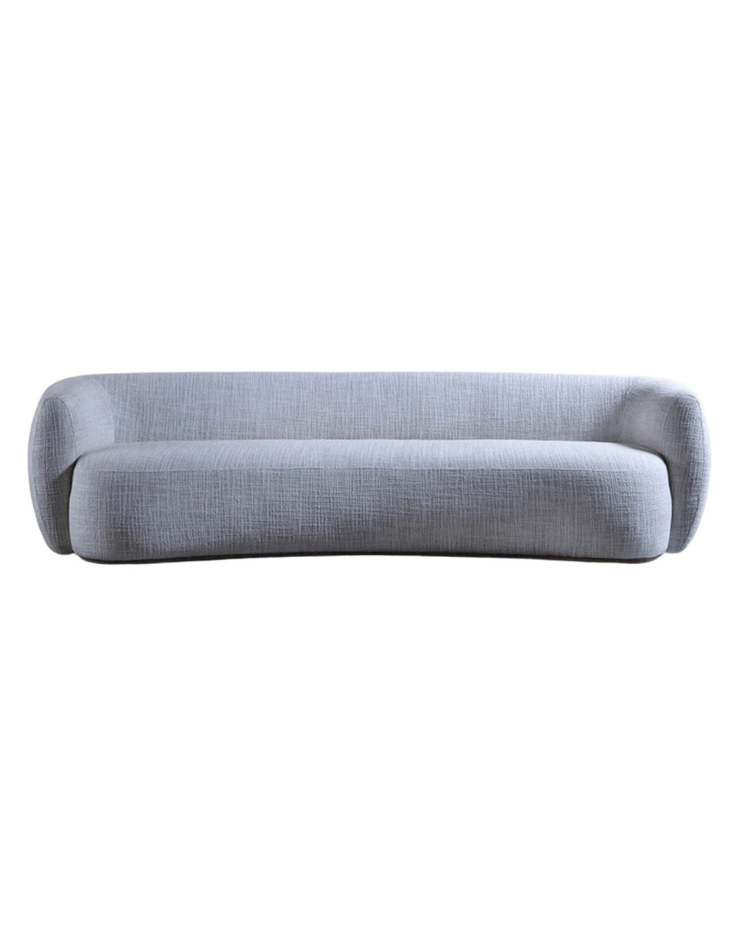 De formas arredondadas, este sofá curvo compõe projetos únicos e é a escolha certa para quem deseja fugir da obviedade. Com base de madeira e estofado em tecido, a peça tem linhas orgânicas e, com isso, permite que as pessoas se sentem de uma maneira mais aconchegante.